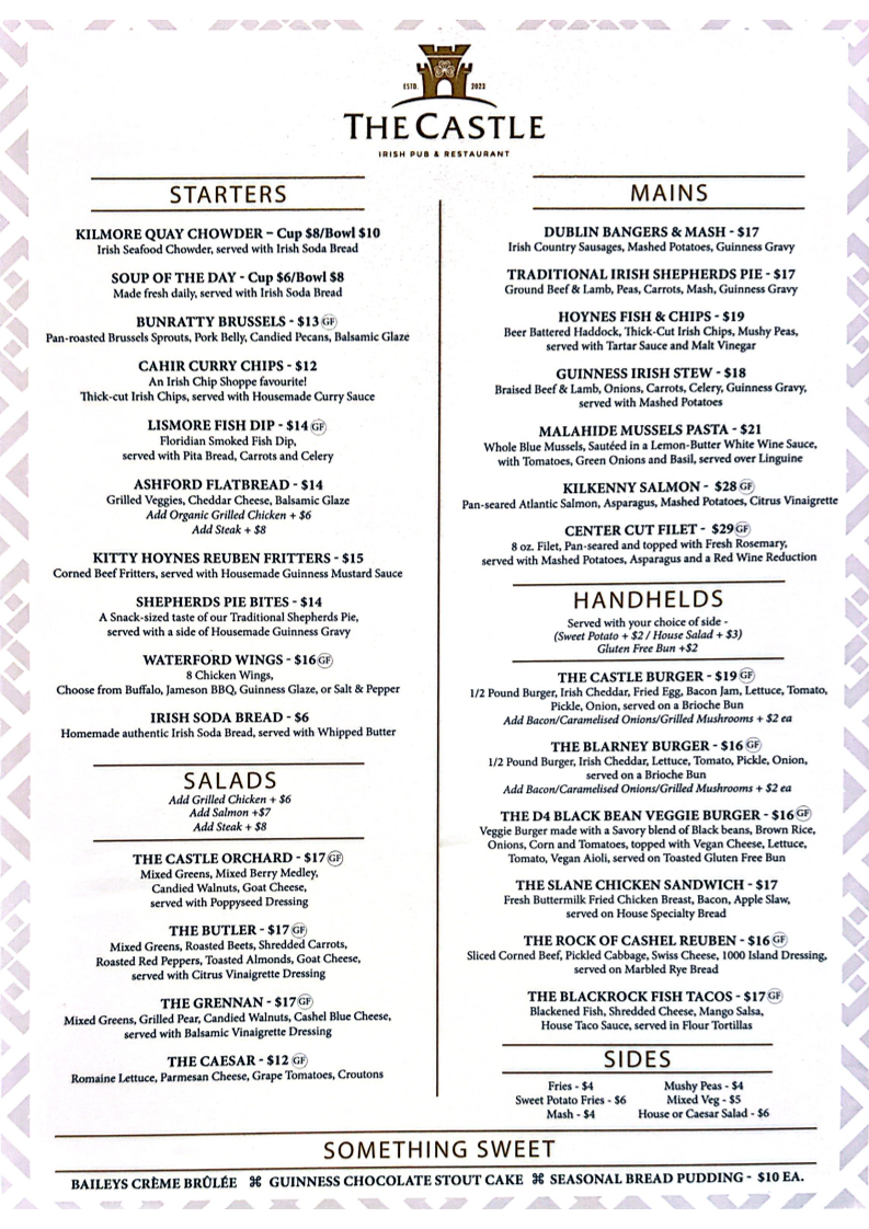 Irish Country Sausages, Mashed Potatoes, Guinness Gravy, topped with Crispy Onion Strings